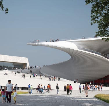 Plaza Pública 24/7: A diferencia de las óperas tradicionales, el techo de la Gran Ópera de Shanghái funciona como una plaza pública y un mirador accesible para todos, incluso sin una entrada para un espectáculo. La construcción de esta rampa-escalera gigante fue clave para materializar la visión de Snøhetta de un edificio "para la gente".